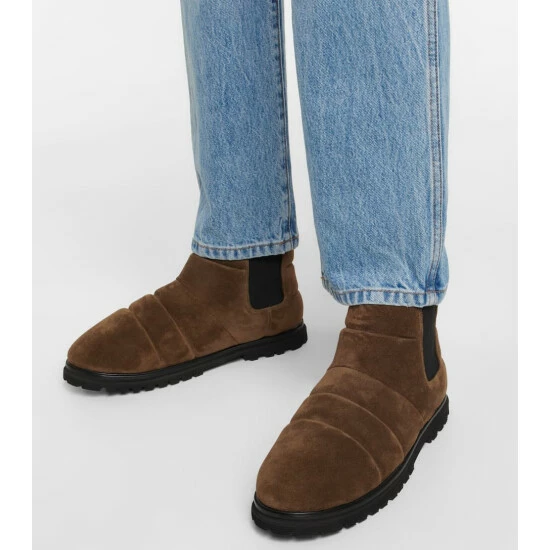 The Bede ankle boots from Nanushka are made from padded suede for a distinctly rich feel. They have elasticated inserts -in the classic Chelsea style- and are set on thick tread soles.