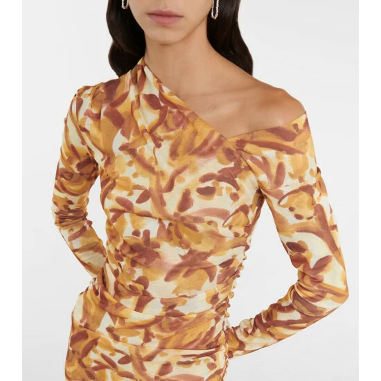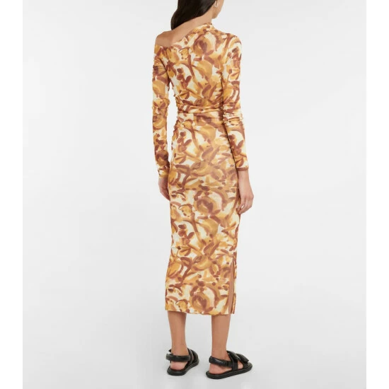 The Jasno midi dress from Nanushka is made from lightweight printed jersey. I has a sharp asymmetric neckline that reveals one shoulder and is finished with ruching at the waist.