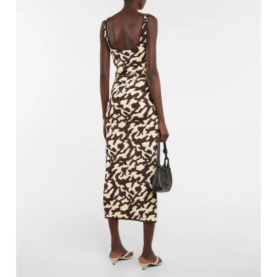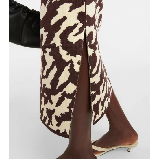 Take skirts to the fall season with the Jenny midi skirt from Nanushka. It sits at the natural waist and features a chic brown and cream pattern that is created using intarsia knitting techniques.