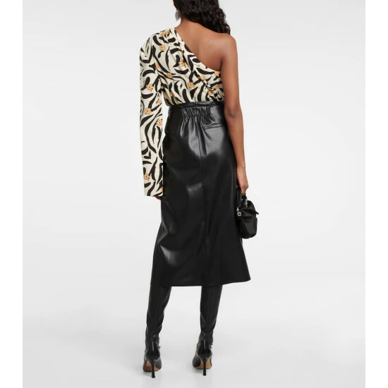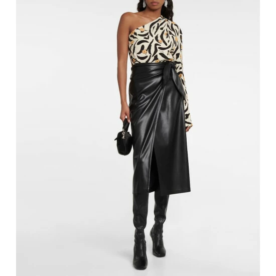Nanushka successfully redefines a timeless wardrobe staple with this midi skirt. This piece features a thick asymmetrical tie-waist and drapes beautifully for an elegant finish.