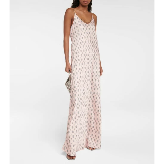 For an elevated take on the slip dress, look to this maxi-length style from Paco Rabanne. Made from printed satin, the defining feature of this piece is the golden chain-detail straps that add a jewelry-inspired touch.