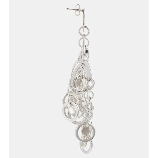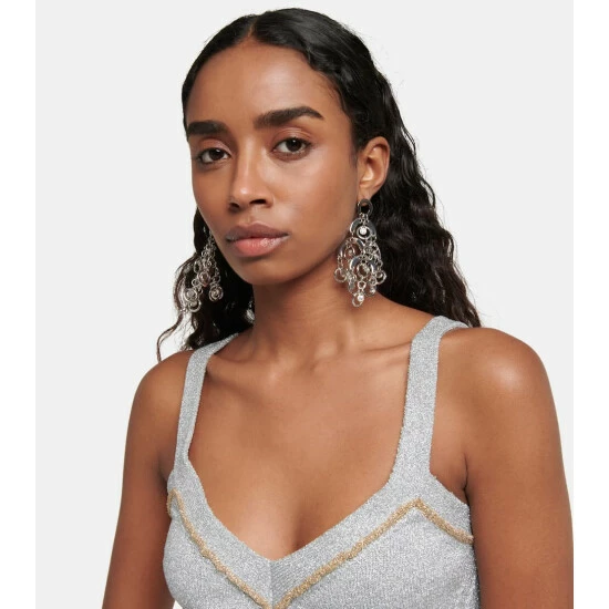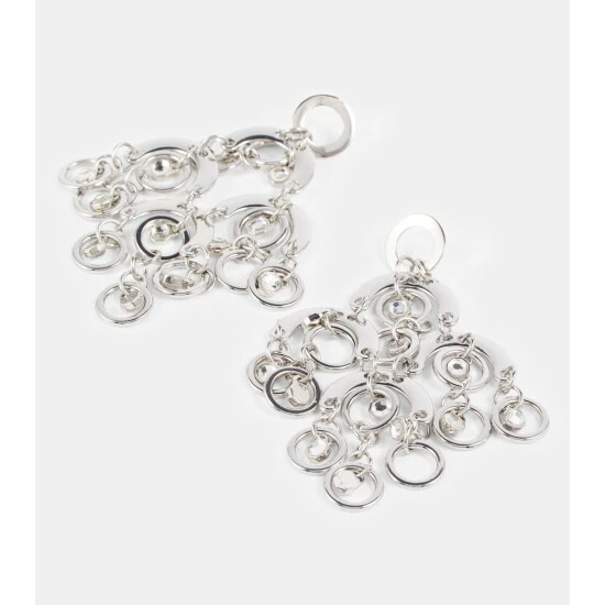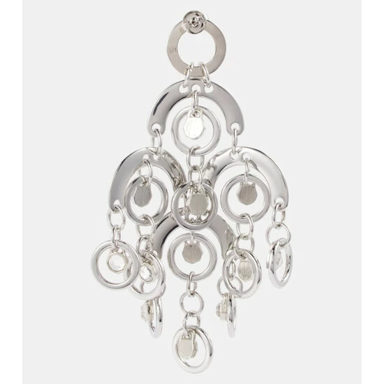 These chandelier earrings are constructed from metal hoops and discs – a Paco Rabanne signature that’s also seen across bags and clothing. They’re designed for pierced ears and finished with crystal embellishments.