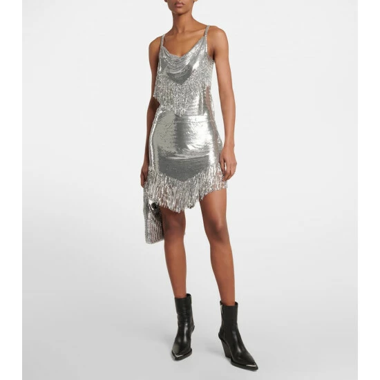 Since the brand shot to fame in the ’60s, Paco Rabanne has been revered for its use of unconventional materials. This camisole is made from aluminum chainmail and features a cowl neckline and fringed detailing.
