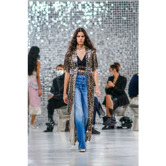 You can never have too many pairs of jeans, and this faded blue design from Paco Rabanne is an instant classic. Styled with a crop top and leopard-print kaftan on the runway, this high-waisted, long-legged pair perfects the label’s glam-meets-laid-back brand of luxury.