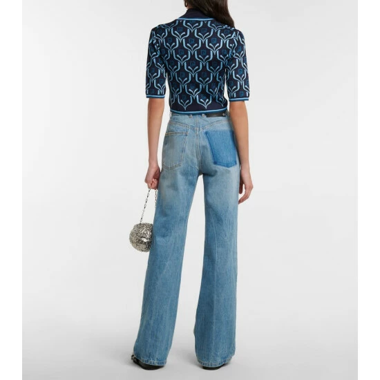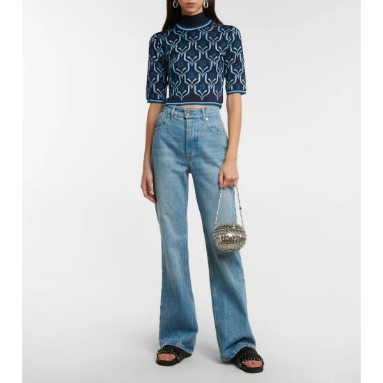 Opt for this jacquard crop top from Paco Rabanne for a bold and one-of-a-kind addition to your knitwear edit. It’s shaped with a ribbed high-neck and striped trims.