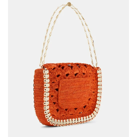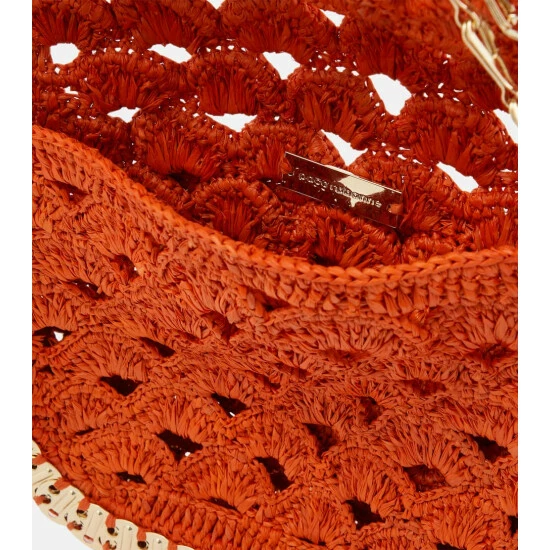 This Large shoulder bag from Paco Rabanne proves that accessories can be casual and glamorous at the same time. This open-work raffia design is trimmed with brand-iconic 1969 golden metallic discs delicately embroidered by hand.