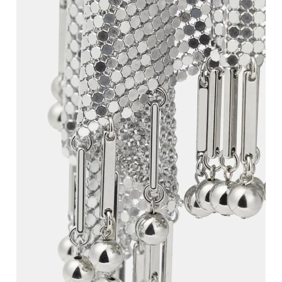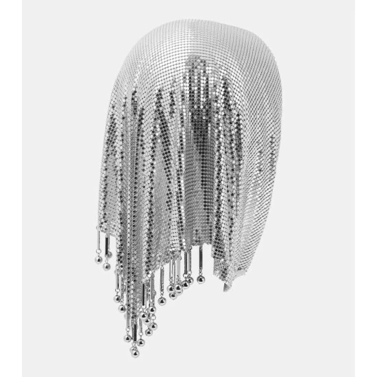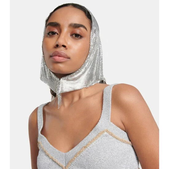 Paco Rabanne’s affinity for unconventional fabrications shines through in this dazzling silver-toned mesh scarf. The design is crafted from chainmail that naturally drapes around the neck.