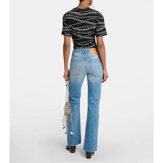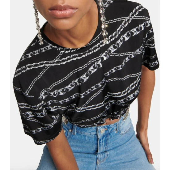 This crop top nods to Paco Rabanne’s famed Twelve Experimental Dresses collection from the 1960s with its allover chain print. Made from jersey, this style is finished with a ring at the hem.