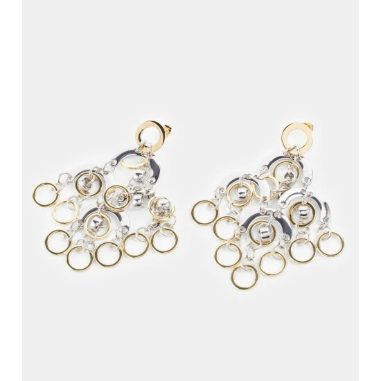Paco Rabanne’s Sphere earrings are made from silver-tone brass and feature multiple silver and gold-tone ring embellishments.
