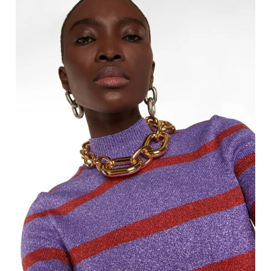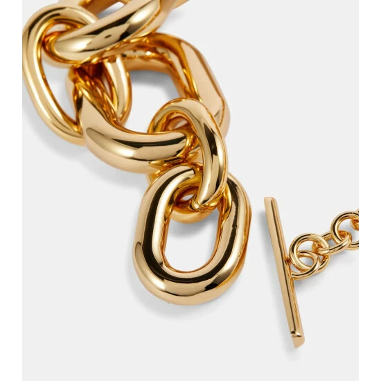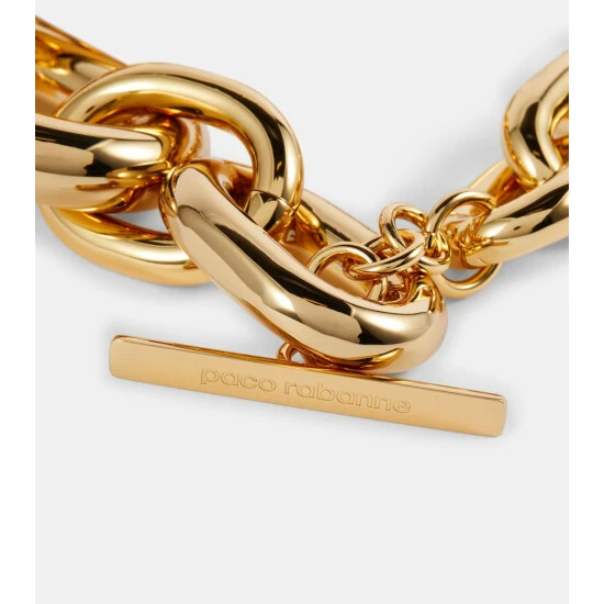 The XL Link choker necklace from Paco Rabanne is aptly named after its oversized chainlink design. It’s made from gold-tone brass and aluminum and fastens with a T-bar.